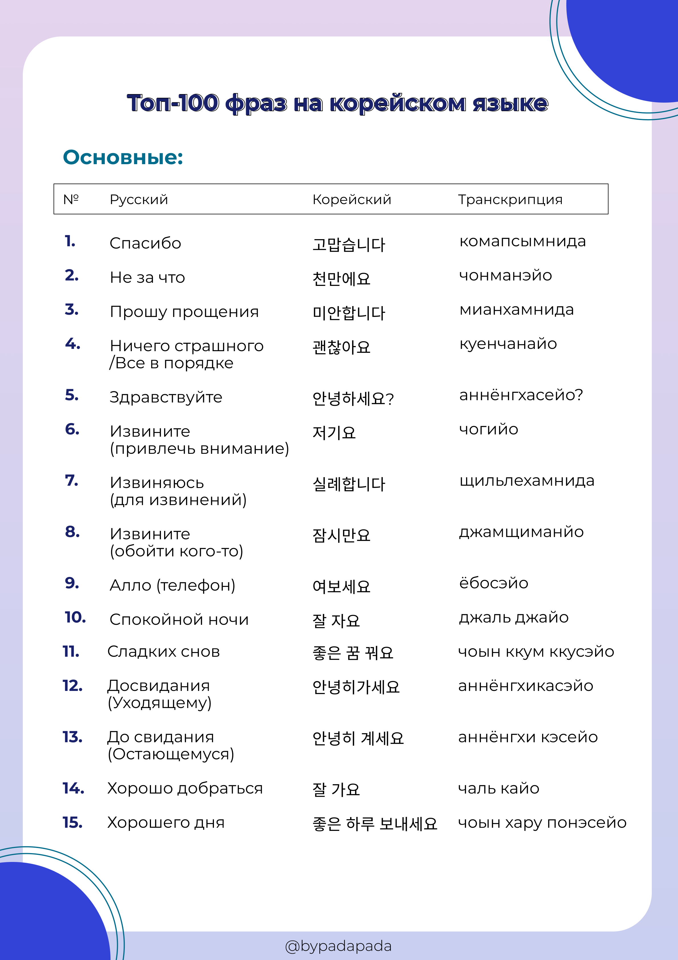 Скачивай чек-лист, изучай новые фразы и практикуй корейский язык уже сейчас!